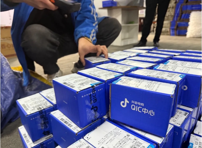 直播打單、現場發貨、送貨上門……在湖北十堰市竹山縣電商直播基地,色彩潤澤、包裝精美的綠松石由中通小哥伍啟軍統一貼單打包。下午4點半,這些綠松石就會搭乘當日班車,運往全國各地。