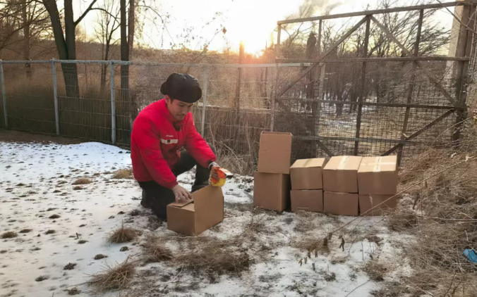 每天清晨6點到晚7點,兩人在臨時搭建的安檢棚里,重復著彎腰、掃描、消毒的動作。護目鏡上的冰霜結了又化,化了又結,日均1.5萬件包裹的洪流中,他們輪流扒幾口飯,便繼續投入戰斗。