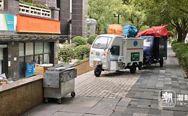 每次取回來的快遞,他都會集中放在8號樓附近的一片邊角區(qū)域,“這里離坡道近,到時用板車一車車拖上去。”小哥表示,小件還可以用快遞袋,大件基本上一趟就只能取一件,“還是挺麻煩的。”