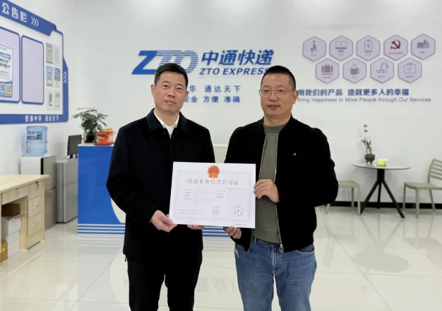 11月26日在中通快遞楊村網點,義烏郵政管理局黨組書記、局長為義烏市眾通快遞有限公司現場頒發浙江首本“一般快遞業務+開辦服務站”許可證。該許可證的落地,標志著義烏市快遞業務經營許可“多型合一”...